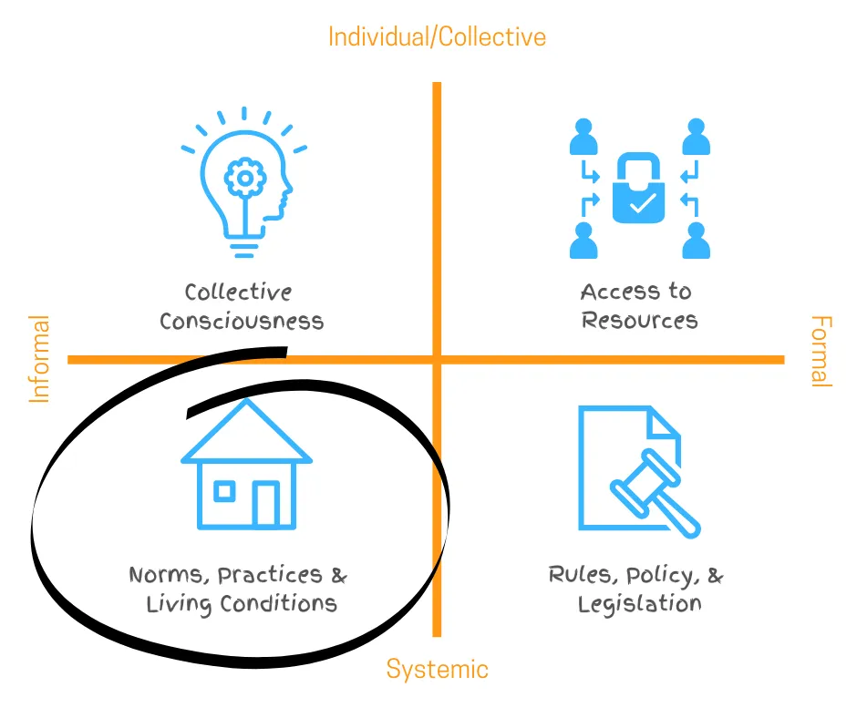 Finally, think about changes related to norms, practices, and conditions within various societal systems. Reflect on the cultural and social shifts required to support systemic change:
