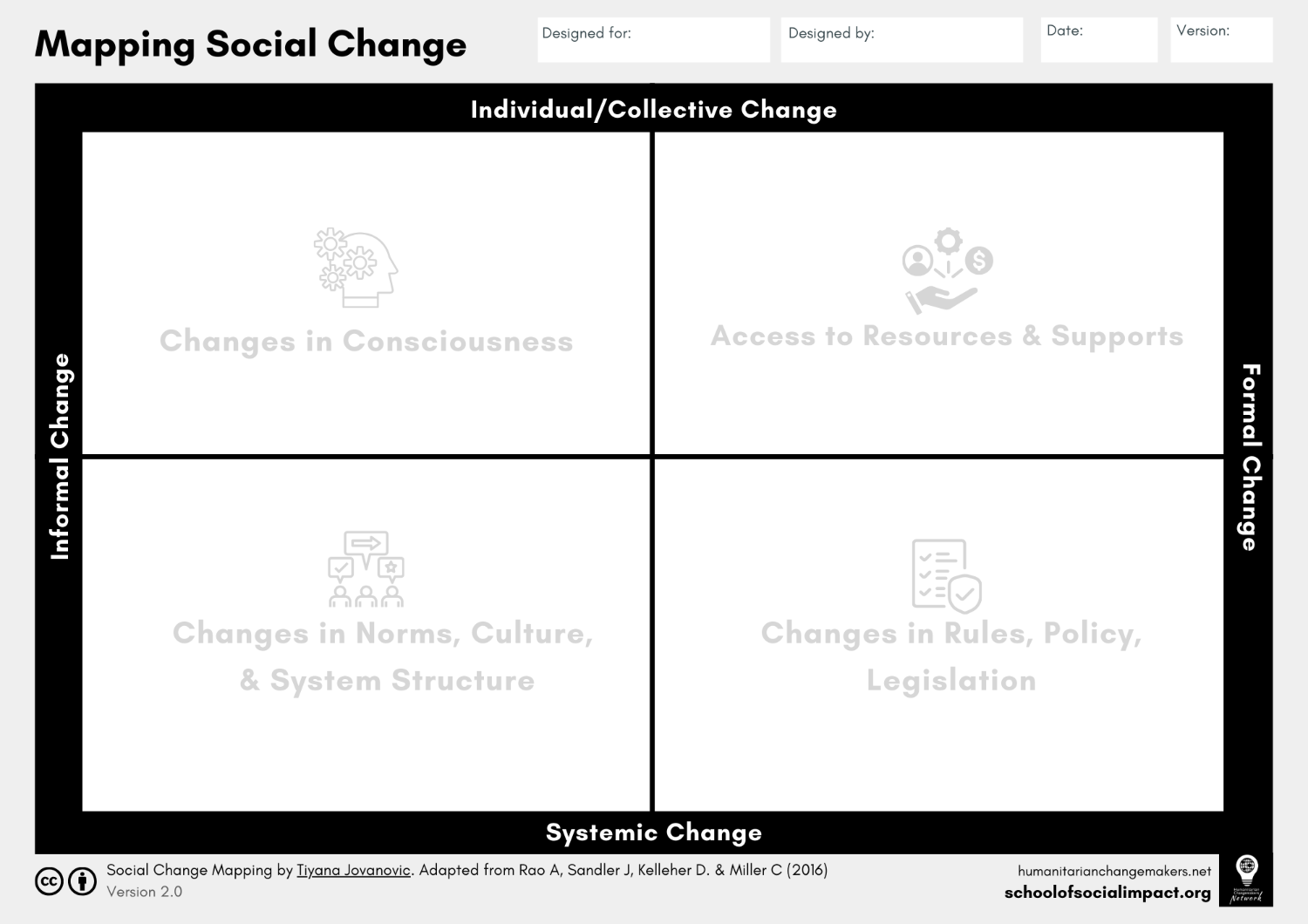 Pick an issue that is important to you, and imagine what the world might look like if this issue was being properly addressed in your community.Ā As you work through each quadrant, document your thoughts and ideas on the Social Change Mapping worksheet.