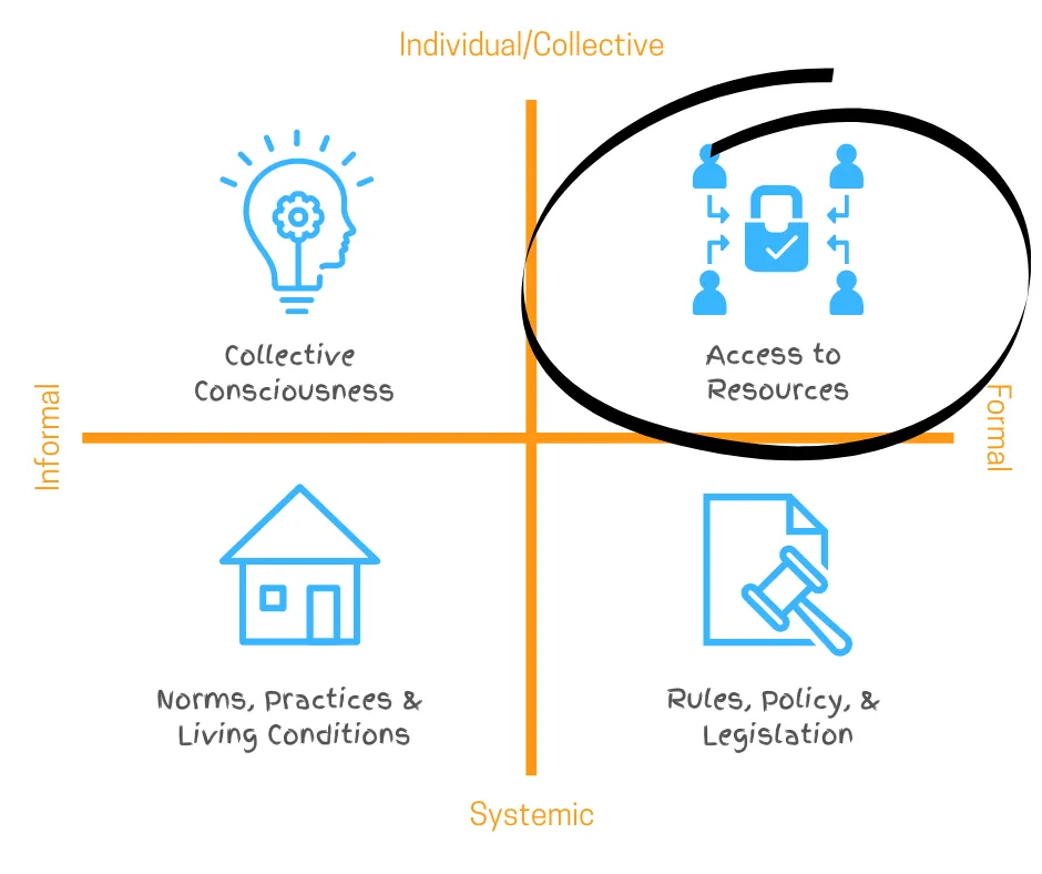 Next, focus on changes related to resources and supports. Identify the tangible, quantifiable changes needed to empower individuals and communities. Ask yourself: